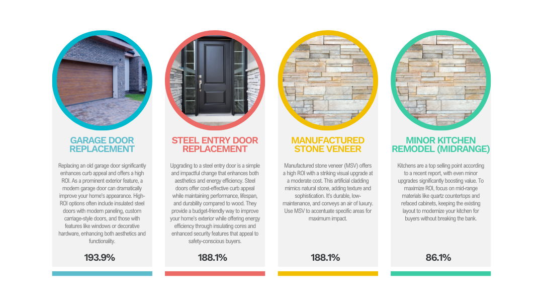 Whether you’re updating your home to sell or simply want to enjoy a more modern space, focusing on high-ROI projects is a smart strategy. From replacing your garage door to enhancing your home’s exterior with stone veneer, these upgrades can boost both your home’s value and appeal.