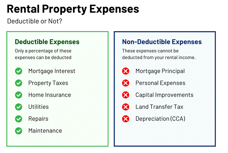- Depreciation (CCA):While you can claim Capital Cost Allowance (CCA) to deduct a portion of the cost of the building over time, it is not a direct deduction from rental income and and requires complex calculations